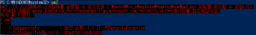 pm2 에 문제가 생겨 업데이트 후 사용하려니 저런 보안 오류가 뜬다.