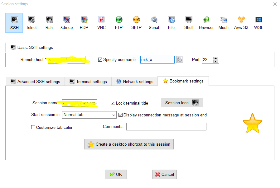 Remote host 에 ubuntu 의 ip 를 쓰고 접속하면 된다.