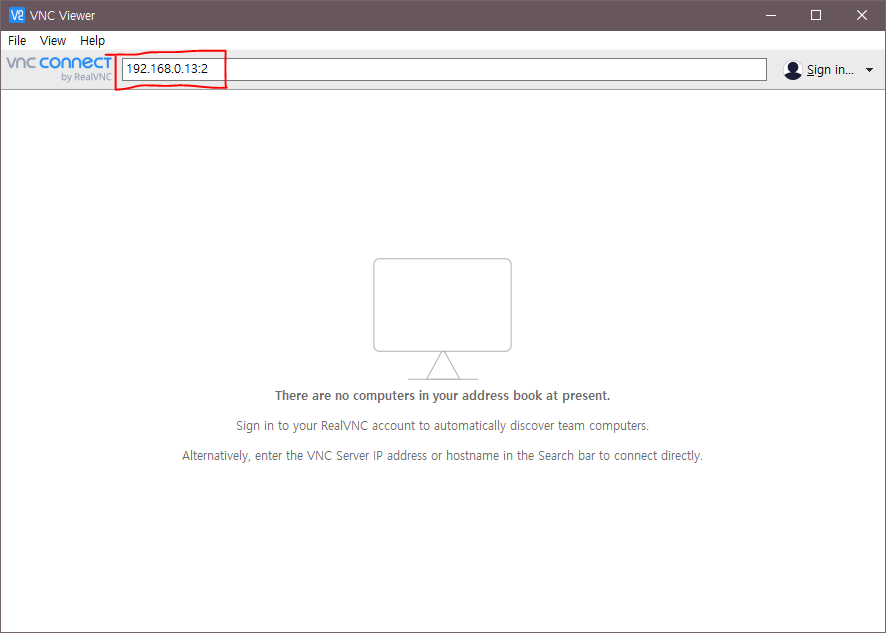 2. VNC 뷰어로 저 주소에 접속 시도한다.